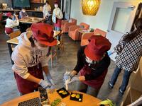 7月26日(土)、27日(日)の2日間、一般社団法人まちづくり篠路第3回篠路東口駅前フェスが篠路神社横駐車場で行われました。ホームメーキング部は2日間を通して11名がボランティアで参加し、メニュー開発から部で手掛けた「篠路ブルー(篠路の藍と空の色をデザインしたゼリーデザート)」を販売しました。2日目には本校ギター部の演奏も聴くことも出来、生徒にとって充実した学びの時間となりました。