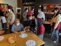 11月8日(土)、高校でもお世話になっている高齢者施設「茨戸ライラックハイツ」で、ホームメーキング部9名がボランティア活動をしました。2年前より施設側からの依頼で、高校生が運営にあたる「英藍カフェ」を実施しています。今年度は、前日に部内で製作した3種のマドレーヌ(バナナ・南瓜・抹茶)をおよそ50名ほどの入所者の方々に振る舞いました。始めは自主的に動くことができなかった高校生も、次第に打ち解けている姿が見られました。最後には、入所者の方から素敵なプレゼントもあり、部員にとって心温まる1日になりました。