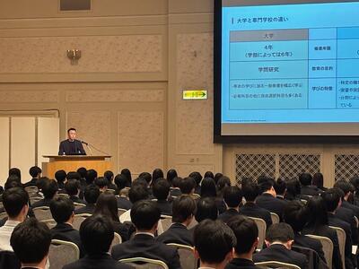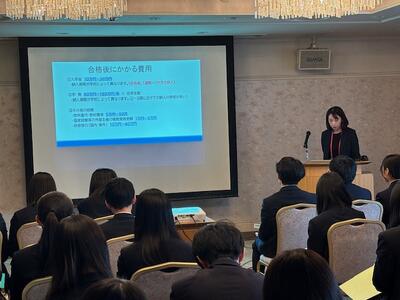 2月26日(木)、特定非営利活動法人「高校進学支援の会」より加藤勝さまを迎え、進学資金セミナーを開催しました。当日は80名ほどの保護者(1・2年次)と20名ほどの生徒の参加があり、今後進学をするにあたり必要とされる資金と納付時期、奨学金や進学ローン等の修学支援について分かりやすく説明いただきました。