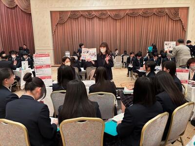 3月18日(水)5~7校時目、1年次生の進路オリエンテーションを実施しました。当日はバスでシャトレーゼガトーキングダムサッポロへ移動し、進路希望別の講演を聞いたあとに、自分の希望する各種学校、公務員、就職ブースで各々が説明・相談を受けました。進路希望が明確な人も、そうでない人も、将来のことを考える良い機会になったのではないでしょうか。
