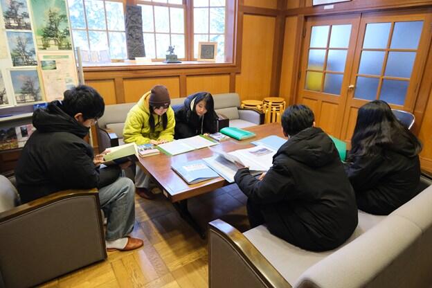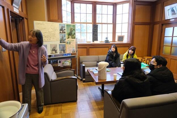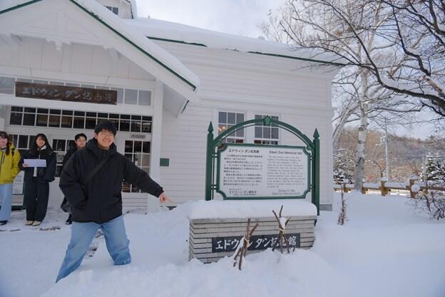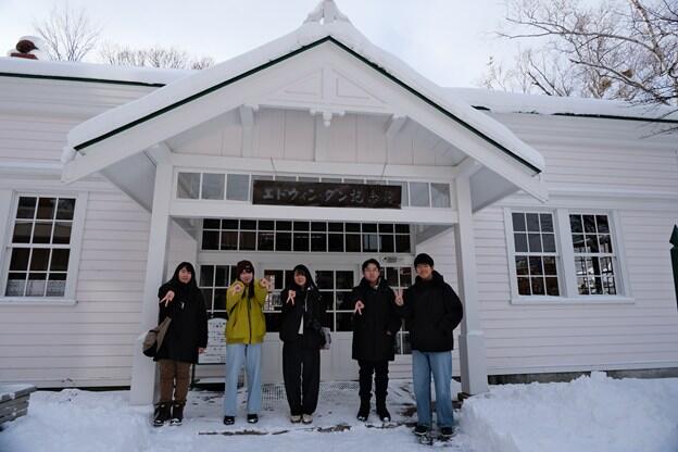 郷土研究部12月の活動は、12月13日(土)に真駒内のエドウィン・ダン記念館を見学しました。一昨年、現3年次生が1年次生の時に訪問して以来で、前回は春に行きましたが今回は雪の積もる中で、周りの風景の違いも楽しめました。今回は3年次生1名、2年次生2名、1年次生2名、顧問の菊池教諭の計6名での活動となりました。